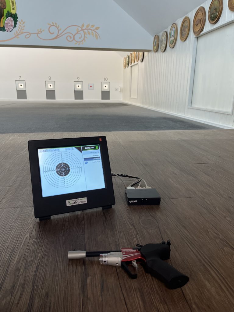 Ab der kommenden Saison kann unsere Jugend mit einer Lichtpistole üben! Alles Notwendige wurde am Stand 9 eingebaut und kann jederzeit über umschalten an der kleinen schwarzen Box genutzt werden.