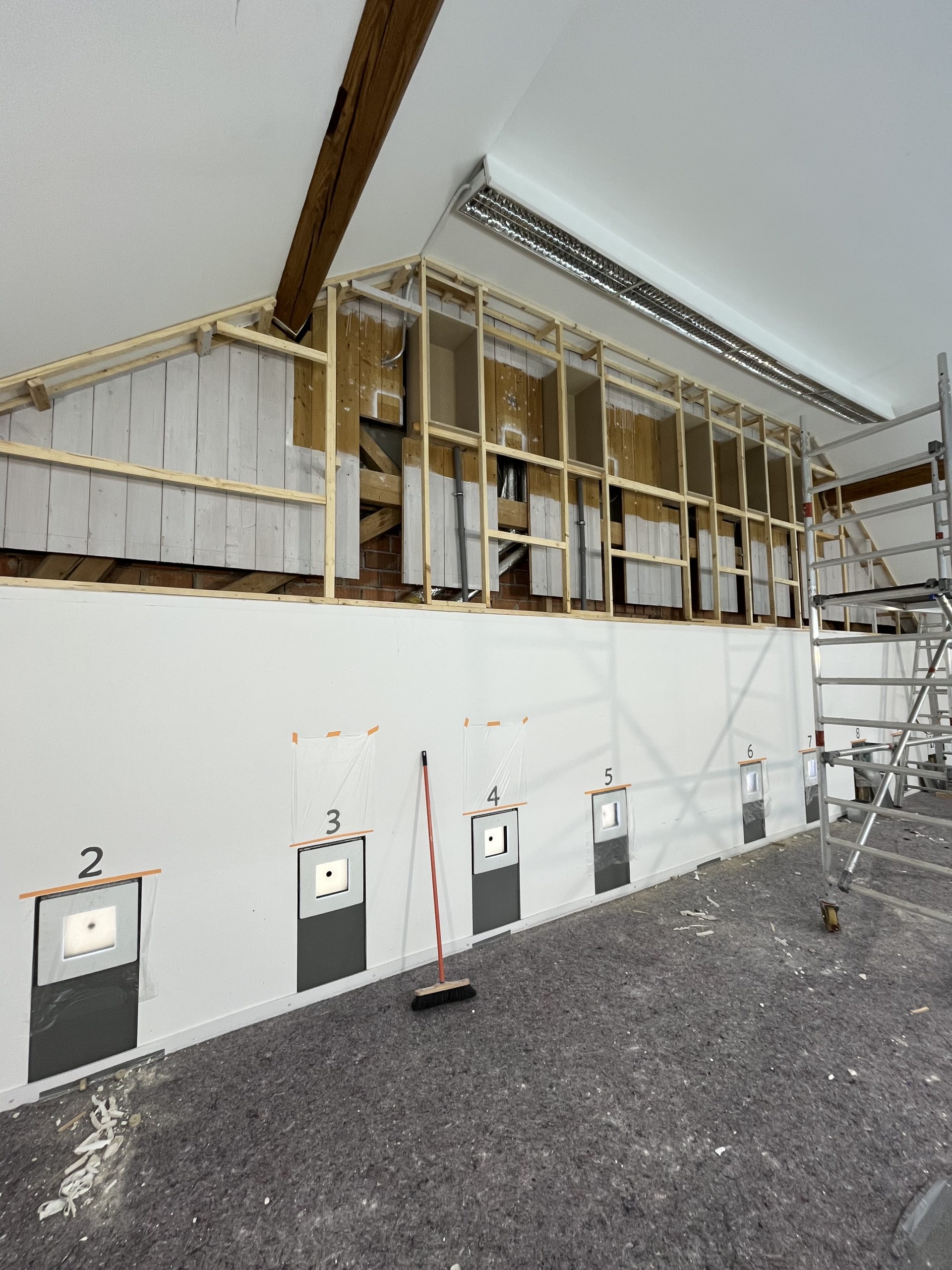 Nachdem die Förderungen genehmigt wurden, konnte endlich mit der Erweiterung der elektronischen Schießanlage im oberen Bereich gestartet werden. Ziel ist es, die letzten manuellen Stände durch fünf elektronische Stände zu ersetzen.